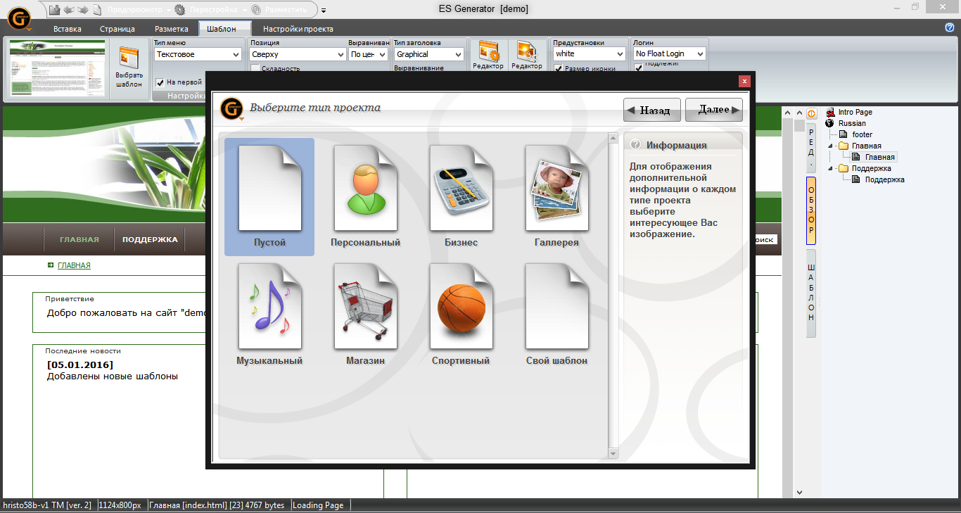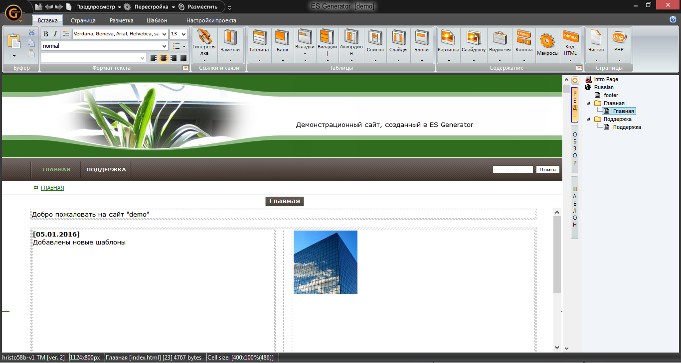ES Generator![]() 3 600 р. 120 Артикул: TL0001 Описание: Конструктор сайтов с очень широкими возможностями для создания своей страницы в Интернете. Не требует особых навыков, простой в эксплуатации. В наличии большое количество шаблонов оформления страниц, возможность заказа индивидуального дизайна. Приятный и понятный интерфейс. В отличие от многих веб-конструкторов, ES Generator имеет существенные преимущества в плане имеющихся опций и инструментов. Готовый сайт вы можете разместить на бесплатном хостинге с доменом третьего уровня *.esgis.ru (название вашего сайта в этом случае будет name.esgis.ru) Интерфейс: Образцы сайтов, созданных с помощью программы ES Generator: http://esgroup.esgis.ru |